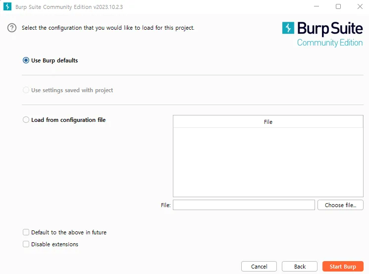Start Burp 를 클릭한다.